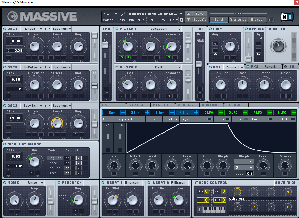 When composing the music for Deus Ex I had to consider the style and context that the game fit into. The game is often identified as a ‘cyberpunk’ game, meaning it depicts a world set in a post-information age in which humans have begun enhancing their bodies with cybernetic implants and prosthetic limbs. The punk element refers to a breakdown in some aspect of society, challenging the popular expectation that a progression in technology always leads to more freedom and a higher quality of life. From this understanding of the basic context that the games themes exist within, I decided the instrumentation should be broadly synthetic and electronic, it should also imply unrest and uncertainty. I had two write music for three threat levels within two different environments, for the lowest threat level I used pads and industrial sounds to create a mysterious and threatening soundscape by using lots of semi tone intervals and detuned sounds. The lowest threat level is when the player is unseen and in hiding, so i tried to make the music reflect the pressure and tension of that state. For the medium threat level I continued many of the themes on as I needed it to still feel tense and mysterious. I added some percussive elements to suggest a kind of urgency, as the player is now in a situation when they are in danger of being seen. I also introduced an arpeggio playing between an F and an A, this implies the Lydian mode making the piece sound distant and ambiguous. For the highest threat level i concentrated more on making it sound open and aggressive rather than tense, secretive and mysterious. I built a half time break-beat/jungle esque groove to be the driving force moving the piece forward. I made the arpeggio more prominent by adding another diad to the pattern up an octave, this gives the player something more like a hook or melody to grasp on to. Throughout all aspects of the percussion i layered different orchestral drums to make the music sound more appropriate for a AAA game such as this which often style much of their game after aspects of cinema.